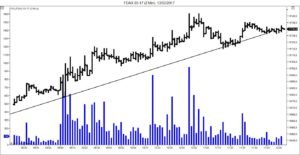 Lo que hacia dudar ante la operativa en largo que así lo reflejaba en todo momento el precio, era su volumen dejado a medida que el precio