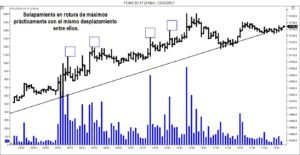 Sucedía algo curioso por arriba, el desplazamiento en rotura de sus máximos precedentes igualaban los dejados anteriormente,