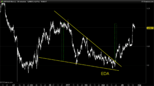 El transcurso de su tendencia dejaba claros máximos y mínimos crecientes guiado claramente por su RDA.