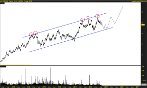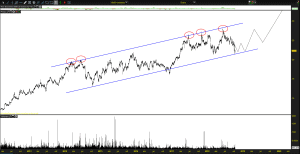 En la parte alta del posible canal alcista encontramos solapamiento creciente, no deja de ser alcista pero alerta del posible papel colocado en el más estricto corto plazo en el valor. En el cual se contemplan divergencias bajistas que no agradan para seguir con el inmediato buen aspecto alcista del valor.