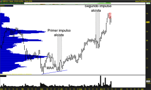 Desde una perspectiva mediante Precio y Volumen por VSA / Volume Profile sigue perfecto su transcurso.