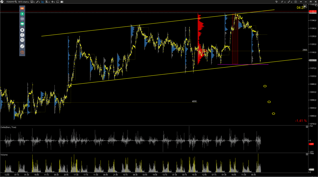 Esta mañana en la Trading Room más info sobre esta (click aquí) partíamos de un escenario de ayer, este en TF 1 minuto.