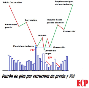 Acción del Precio: Este aspecto se enfoca en el movimiento de los precios de un activo. Los analistas de VSA observan patrones de precio, como barras alcistas, bajistas o patrones de consolidación, para obtener señales sobre la futura dirección del mercado.
